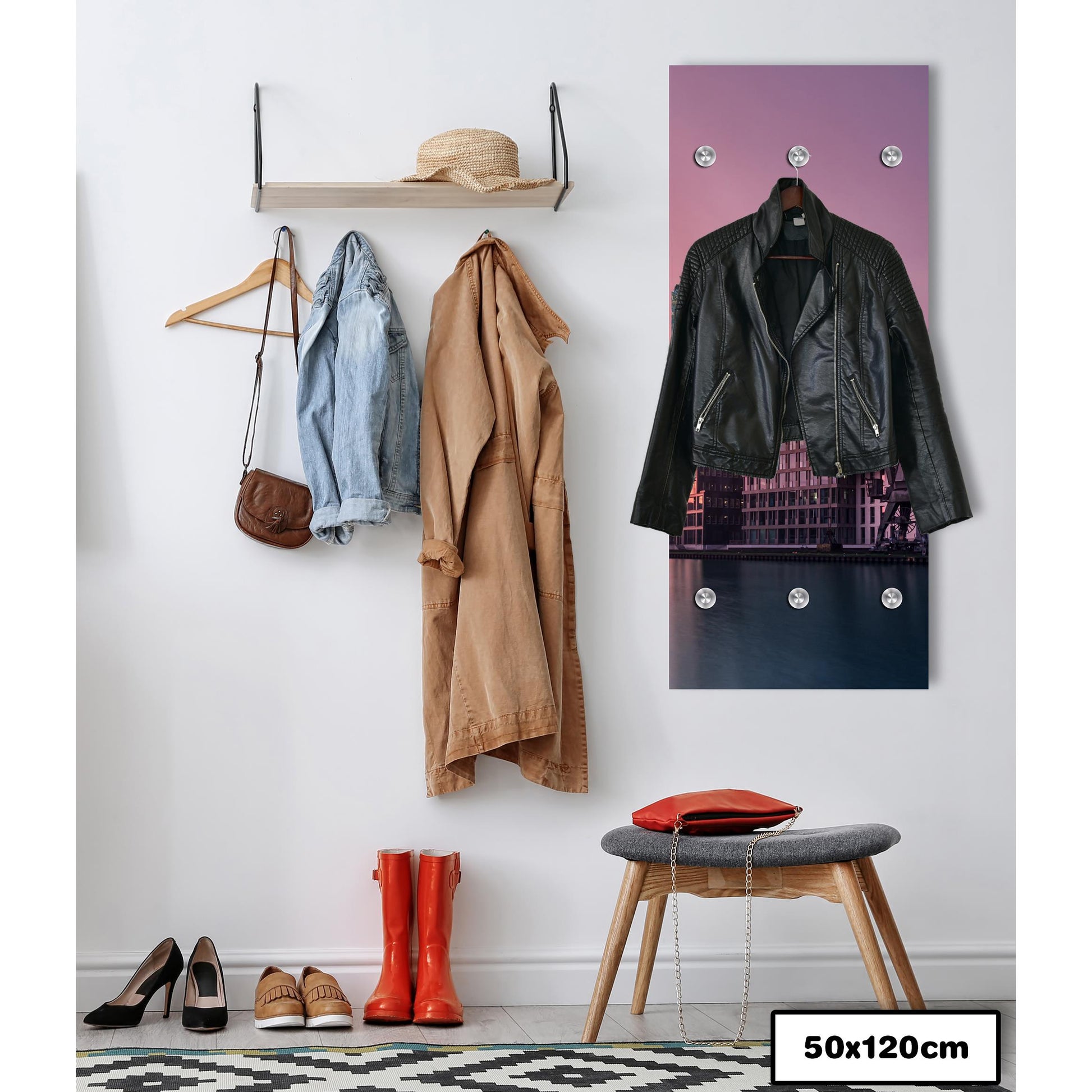Die bedruckte Garderobe aus Acrylglas ist nicht nur ein praktisches Möbelstück, sondern auch ein echter Hingucker in jedem Eingangsbereich. Der robuste Aluminiumrahmen sorgt für Stabilität, während die Haken ausreichend Platz für Jacken, Mäntel und andere Kleidungsstücke bieten. Mit dieser einzigartigen Garderobe wird das Aufhängen und Ordnen von Kleidung zum Vergnügen.