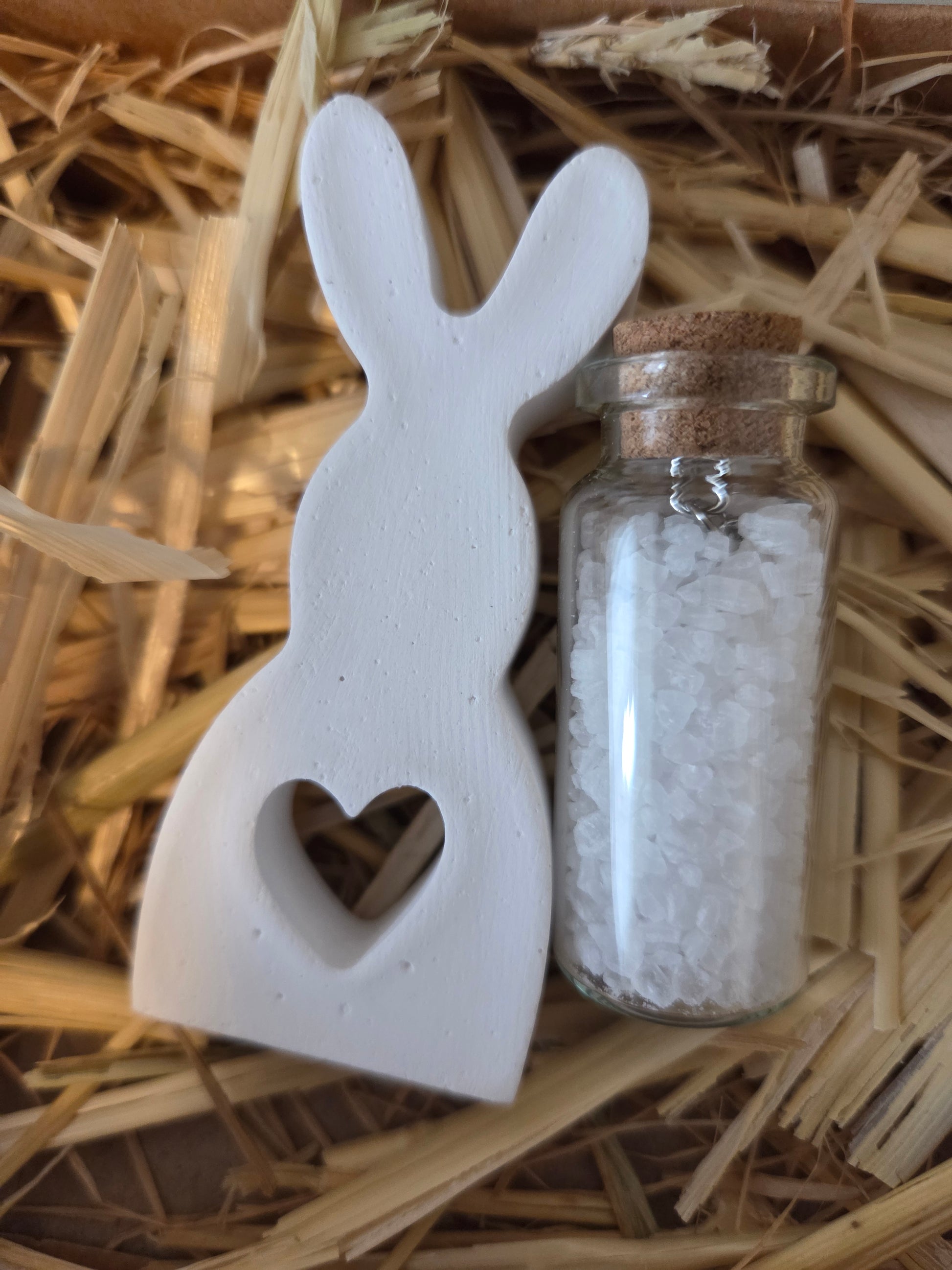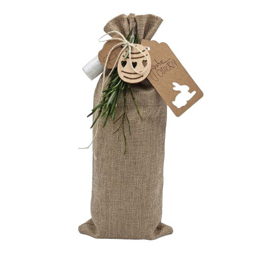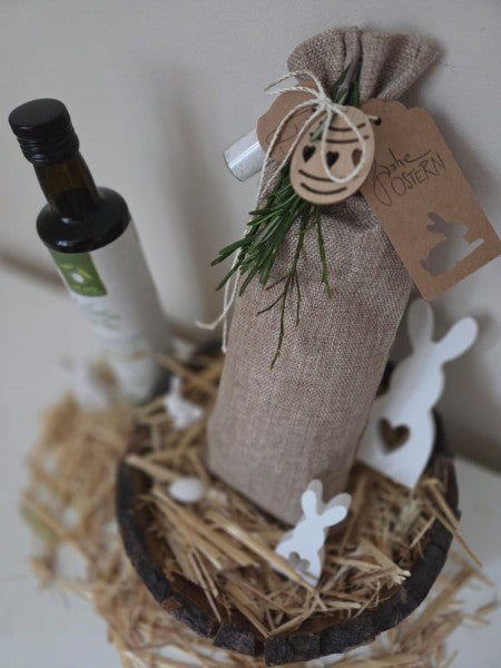 Oster-Geschenkoption: dekorativ im Jutebeutel, liebevoll verpackt, inkl. Salzfläschchen, DIY-gegossenes Osterhäschen